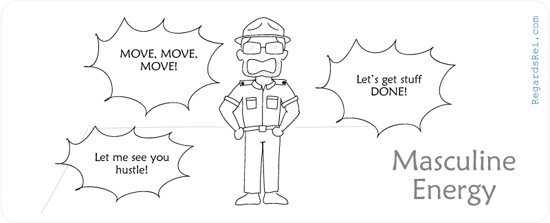 - Take it to the head. Use Masculine energy to think of how you want to get there, and to plan the route. Masculine energy is about both physical and mental action, that is, movement. Use your mind to organize, and then think of the easiest and the most pleasant way to carry out the task.
