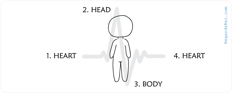 I went to a Bashar Channeling convention once. There, Bashar mentioned that the heart beat reflects how we should live: start from the heart, then take it to the brain, then to the body, and then back into the heart.