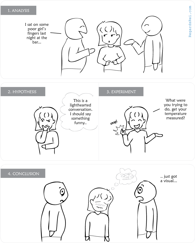 If I think about it, I think I do this because I have this nerve-racking belief that, without total inhibition, I might compulsively and quite involuntarily act weird, much like having Tourettes for social awkwardness. I could, at any given moment during a conversation, spasm into an awkward behavior, which if and when it happens, I’m certain I’ll melt and die right at the spot from the pure, hot shame of it.